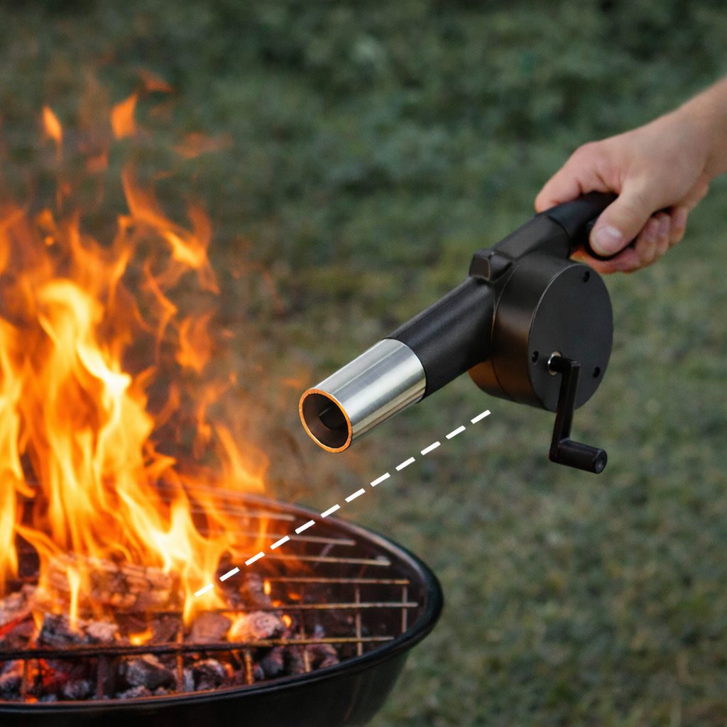 Wystarczy kilka ruchów korbką, aby szybko rozpalić grill, kominek lub ognisko – bez wysiłku i bez zbędnej walki z ogniem.