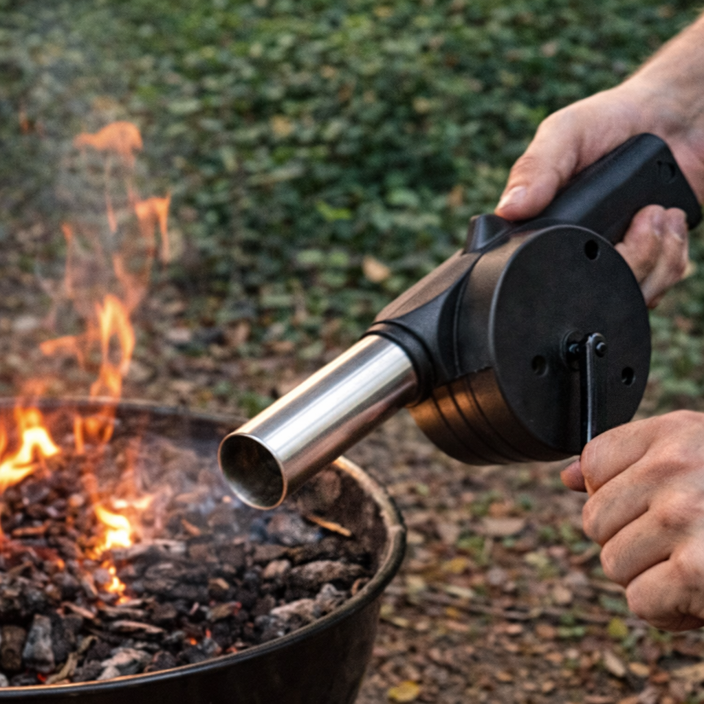 Dmuchawa daje ciągły, mocny i ukierunkowany nadmuch – czego nie osiągniesz ustami ani kartonem. Dzięki temu działa szybciej i skuteczniej.